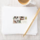 A modern and elegant boho Christmas greeting return address label featuring three lovely photos of your family in an unusual collage embellished with hand painted watercolor pine trees. (The placement photos are from Pexels photographed by Ketut Subiyanto and for sample only. Kindly replace it with your own.)