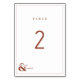 A modern, simple and unique Rustic Terracotta colour wedding table number with Border and with the names of the bride and groom. Personalise your own Rustic Terracotta wedding with this colour trend and design in our collection.