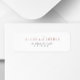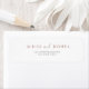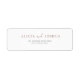 Elegant minimalist typography script her and his names wedding return address labels in simple terracotta brown fall colour.