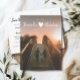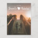Modern minimal trendy brush script calligraphy Save the Date postcard that is fully customisable front and back. Your hand-lettered names with a cute heart surrounded by your favourite photo and chic typography. More information about the big day on the back alongside your return address, space for your wedding web site and full names. This is the version with white lettering.
