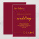 This elegant burgundy and gold wedding invitation is perfect for a modern wedding. the simple design features elegant gold calligraphy on a burgundy background.