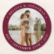 Modern Simple Burgundy Wine Photo Wedding Round Paper Coaster