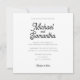 A minimalist black and white wedding invitation featuring a typographic design and simple calligraphy script font. Easily personalise by filling in with your own details.