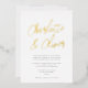 This chic and simple wedding invitation features modern calligraphy script in foil, a classic white background, and modern typography. This elegant yet simple design is a fabulous choice for any style of wedding. You can customise this design even further by adding a photo or additional text to the back. Foil is available in gold, silver, or rose gold and absolutely shines! Select real foil wedding invitations to add that wow factor!