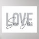 Modern, simple, minimal typographic design of a saying "Love San Jose" in tones of grey colour. Cool, urban, trendy and playful graphic art with handwritten typography.