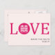 Simple, modern chic Chinese wedding Save The Date design with 'double happiness' (囍) logo set in LOVE. All the default text(sample info) can be fully customised with your own wordings occasion-accordingly, and you can also change the fonts, sizes, & colours of the text. To change the text only, use the personalise it option. For more extensive changes, including changing the background colour, the font, font colour, font size, or text placement, use the "customise it" option. Add what you need, delete what you don't need, customise it to your heart's desire. Have fun editing!