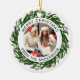Modern Simple Christmas Wreath Family Photo Ceramic Ornament