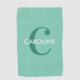 Modern Simple Classic Initial Turquoise Golf Towel featuring a modern type and bold monogram.
