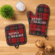 Modern Simple Classic Script Plaid Christmas Oven Mitt & Pot Holder Set