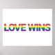 Modern, colourful, vibrant typographic graphic design of saying "Love Wins" in rainbow flag colours. Simple, bold, vibrant and urban graphic art.
