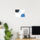 Abstract, cool, trendy graphic art made with simple geometric shapes. Modern, simple and playful graphic art in blue and grey colours. Circles and particle lines are used.