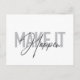Modern, simple, minimal typographic design of a saying "Make it happen" in tones of grey colour. Cool, urban, trendy graphic vector art with handwritten typography.