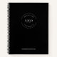 Give your clients, customers, vendors, staff, family, and friends a useable and professional branded notebook from your business. Promote in a simple and classy way, customise this fillable monthly/weekly planner with your logo and website. Featured here in classic black. The logo also appears on the backside. This notebook is a great souvenir at conferences, staff meetings, or holiday presents.