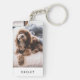 This adorable pet keychain features one of your favourite animal photos with your pets name written below in a modern, simple black type. The perfect keepsake for dog owners!