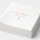 Modern minimalist script bridal shower napkins with heart shape and event date in real rose gold foil, simple and elegant. Great for modern bridal shower, baby shower, and birthday party