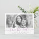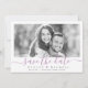 Modern script "save the date" in lilac purple colour, with couple's photo, simple and elegant. Great photo save the date cards for modern wedding and other events.