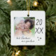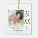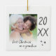 Modern "first Christmas as a grandma" ceramic ornament with a simple design featuring the year and a custom photo. Double-sided design.