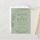 Beautiful modern simple sage green eucalyptus leaves sprig wedding save the date, Elegant minimalist greenery line art drawing and stylish typography script in emerald green on an sage green background. Unique artist created custom wedding save the date magnet to remind friends and family to keep the date free. Minimalistic foliage design that is easy to personalise using the simple template. Original artwork by artist Catherine Sweetman