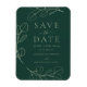 Modern simple eucalyptus leaves emerald green wedding save the date invitation magnet. A unique artist created minimalist stylish line art design to remind friends and family to keep the date free. Beautiful minimalistic eucalyptus foliage, a simplistic greenery drawing with white elegant typography script on a dark green background. A minimalistic stylish botanical design that is easy to personalise using the easy to use template. Original artwork by artist Catherine Sweetman