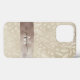 "Elegant Modern Simple Foliage Neutral Beige with Bronze Foil Script Name and Monogram iPhone 13 Case." Elegant neutral tone-on-tone beige pattern with a bronze foil brush stroke that features your name and monogram personalised. Created by internationally licensed artist, Audrey Jeanne Roberts, copyright.