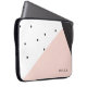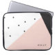 Protect your laptop with this modern blush pink laptop sleeve featuring black polka dots and a blush diagonal design. Add your name for a classic personalized cover. Useful and chic...what more could a girl want?