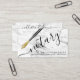 This modern and elegant business card is perfect for any notary. It features a hand-drawn gold and black fountain pen illustration with handwritten signature script typography on top of a marble background. The colour scheme includes gold, black, and white. It's simple, minimalist, contemporary, and professional; the perfect design to attract customers.