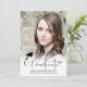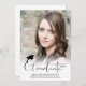 Announce your high school or college graduate's achievement with this modern, simple handwritten script typography GRADUATE title design announcement featuring 2 photos (1 on the front and 1 on the back) with a black graduation cap or mortarboard accent. The back offers a text field for information about your graduate's achievements, activities and future plans if desired. ASSISTANCE: For help with design modification/personalisation, transferring the design to another product or if you would like coordinating items, contact the designer BEFORE ORDERING via the Zazzle Chat MESSAGE tab or email makeitaboutyoustore@gmail.com.