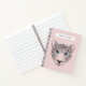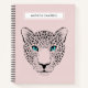 This stylish notebook is perfect for back to school! The front features a simple, bold leopard face with aqua blue eyes, over a light blush pink background. The back of the notebook contains a matching leopard pattern. Easy to personalise for a great gift!