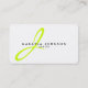 Modern and Elegant personalised light grey Monogram professional business cards. Black and Lime Green on plain white background. elpmonogram