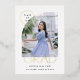 Graduation photo announcement card with a modern, simple, minimalist design, and photo frame with a curved arch shape.