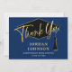 Modern Simple Minimalist Golden Navy Graduation Thank You Card
