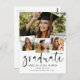 A modern graduation invitation featuring the word “graduate” on the front in stylish script calligraphy, plus 4 of your favourite senior photos. Add your own personal celebration details to the back. This is the minimalist black and white version.