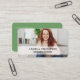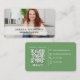 A simple design features a QR code social media photo, a modern simple minimalist contemporary, with an add your own photo logo, a contact info phone email website, with Facebook Instagram Pinterest twitter, a trendy stylish photograph picture pro, a basic clean digital scannable scan, an elegant minimalist design style, with a photo or graphic template, a simple green and white style.