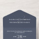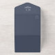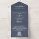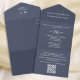 This design features a budget slate blue QR code, with a modern website online rsvp response, a minimal guest response via the website, a trendy simple typography script font, a trendy stylish calligraphy ampersand, budget-friendly wedding invitations, a QR code rsvp reply website, an elegant seal and send invites, a simple tri-fold guest response, a simplistic elegance minimalist minimal