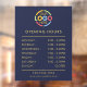 Present your business hours with a polished and professional window cling, tailored for modern corporate and small business environments. Featuring a sleek, minimalist design, this window cling can be fully customised with your company logo and hours of operation. It's the perfect solution for enhancing your storefront's appearance while maintaining clear, effective communication with customers. Ideal for businesses seeking a refined, branded look.