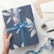 Modern Simple Navy Blue Floral Pattern Wrapping Paper