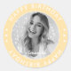 Modern Simple Pastel Yellow Happy Birthday Photo Classic Round Sticker