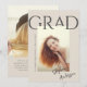 Elegant and contemporary, this graduation announcement showcases the graduate's journey with a photo displayed in the centre. The word "Grad" stands out with its modern art deco lettering against a neutral background, adding a touch of sophistication. Customise this modern photo graduation announcement by incorporating the graduate's name, graduation year, and school name. Versatile and chic, it's an ideal choice for celebrating both high school and college milestones!