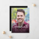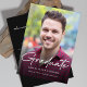 This is a modern college graduation announcement using a classic script font overlay along with a single minimalistic photo on the front. The reverse side includes a message that you can personalise. Please contact the designer for any queries related to this design.