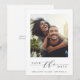 Simple and modern wedding photo save the date flat card with custom text on the back. For more advanced customisation of this design, please click the customise further link to change the font, size, colour, etc.