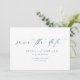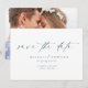 The Modern Simple Photo Wedding Save The Date combines elegant typography and minimalist design with a personal touch—your favourite photo. Perfect for spring or summer weddings, the clean calligraphy script in soft blue adds a modern, simple elegance. It's fully editable to match your style, and I'm here to help if you need any assistance!