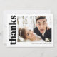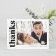 This is a modern wedding thank you card using a bold typography style font along with a minimalistic simple photo design.
