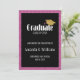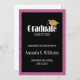 This is a simple and modern design with a gold glitter graduation cap, pink glitter tassel and white text. Black background and pink glitter borders. The text details can be personalised.