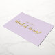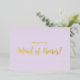 This modern gold foil bridal party proposal card features a trendy lilac purple background and customisable text fields on both sides, ideal for your maid of honour, bridesmaid, flower girls, etc.