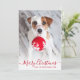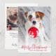 Elegant Modern White and Red Script 2 Photo Merry Christmas Script Holiday Card. This festive, simple minimalist, whimsical two photo holiday greeting card template features „Merry Christmas” greeting text which is written in a beautiful hand lettered swirly swash-tail font calligraphy script in red on white colour background. On the reverse side with your greeting message template with a little heart doodle on white and one photo template. Pretty greeting card for your family and friends in Christmas Holiday season.