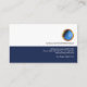 Overleaf, in the white portion above, you have the logo option and business name. Southwards, in the blue column, rest your contact details and a slogan option. You have lots of option on this design which allows you to customise your card.