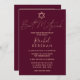 This elegant, minimalist, and chic Bat Mitzvah invitation is the perfect choice for your daughter on her special day. It features a simple and modern faux rose gold typography design with the star of David on a burgundy red background. It's a beautiful, contemporary, and stylish design to celebrate this once in a lifetime event!