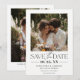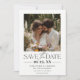 A timeless and elegant two-photo save the date card featuring a classic black and white layout with stylish serif and handwritten script fonts. The top showcases your favourite engagement photo, while the clean white background keeps the design effortlessly refined. Ideal for couples planning a modern, chic, or destination wedding. Use it for fall or summer ceremonies with floral or outdoor themes. Matching back layout available for more personalisation.