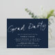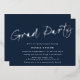 This is a modern and simple graduation party invitation. It uses a minimalist handwritten script design in classic blue and white with "Grad Party" in stylish silver foil. Please contact the designer for any queries about this design.