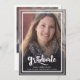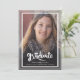 A Modern bold elegant Script with two photos Graduation Announcement. Featuring a full size photo on the front with white text overlay and a photo on the reverse side with optional details.